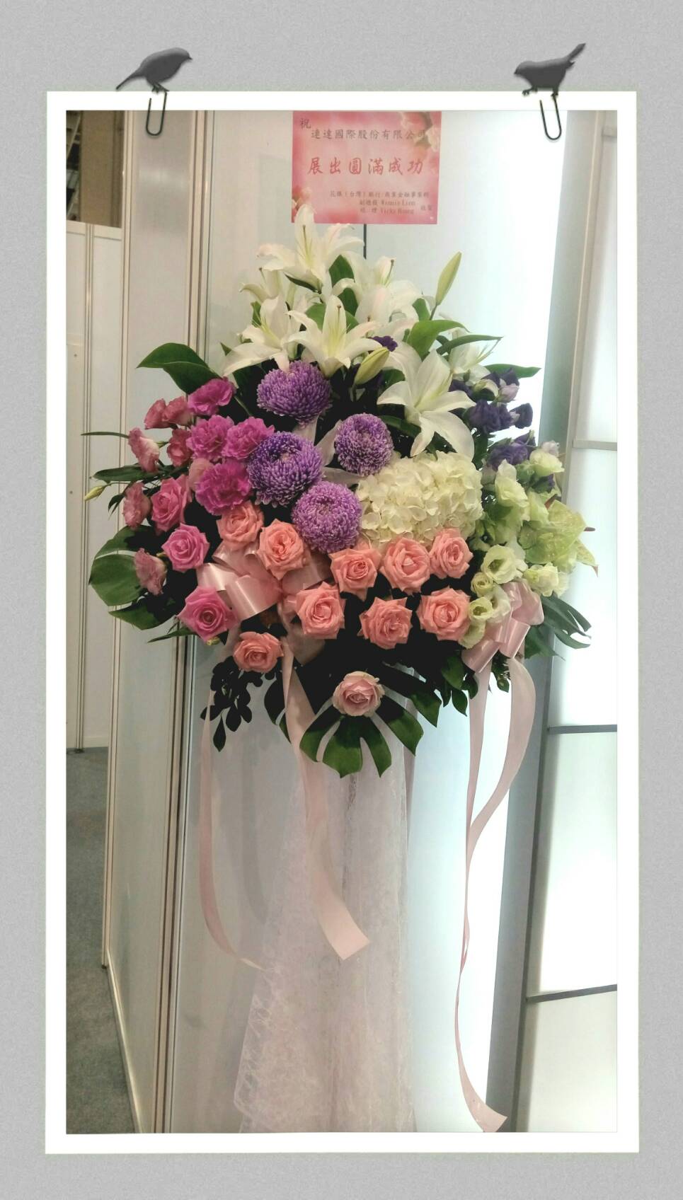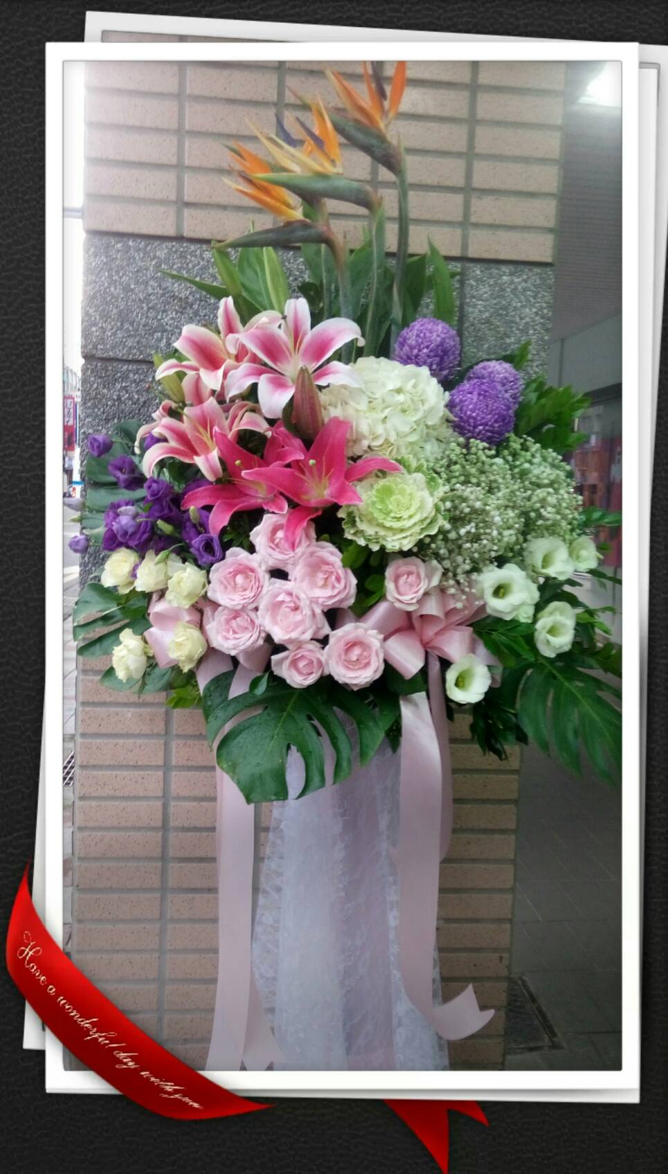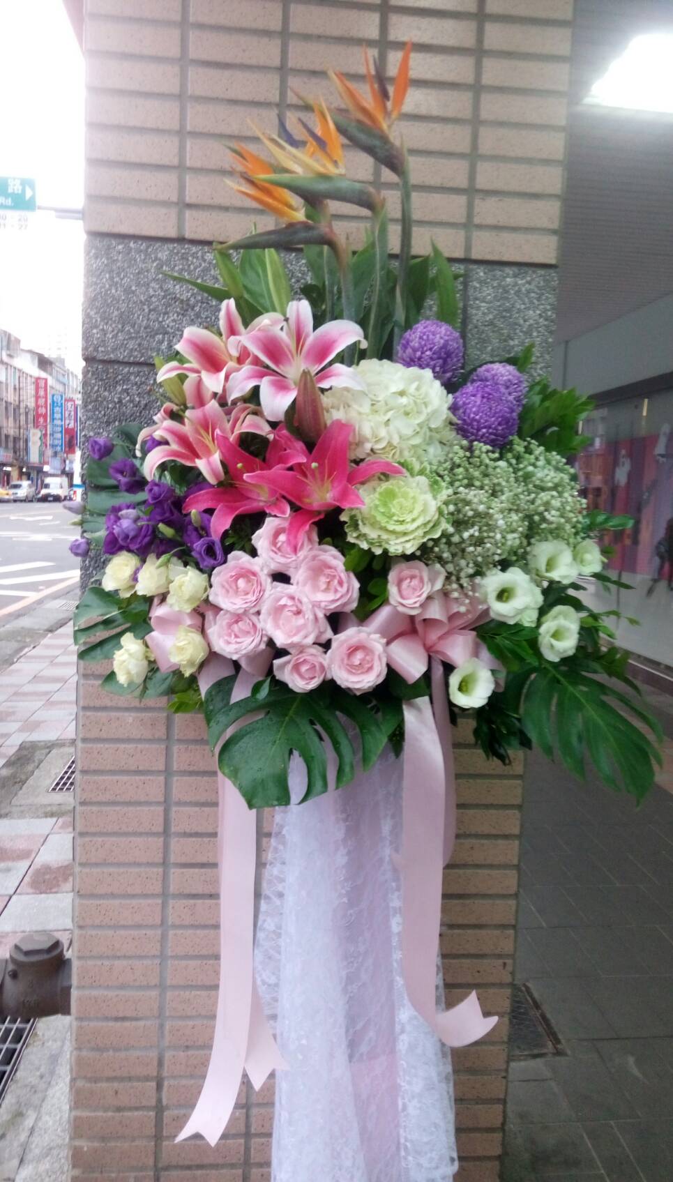 花材 : 天堂鳥.百合.玫瑰.桔梗.牡丹菊.綉球.滿天星